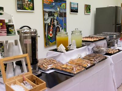 Στον εσωτερικό χώρο του πολύκεντρου έγιναν παρουσιάσεις έργων από δύο καλλιτέχνες : Alessandro de Martino ‘’ η Βοστίτσα η πόλη των κήπων ‘’ |Εικαστικός και Δάσκαλος εικαστικών, πτυχιούχος της ακαδημίας καλών τεχνών της Φλωρεντίας , ιδρυτικό μέλος της Ένωσης εικαστικών, 60 εκθέσεις ζωγραφικής , Βασίλειος Μανουηλίδης ‘’ το Αίγιο από ψηλά ’’ | Ερασιτέχνης φωτογράφος , αεροφωτογράφιση τοπίων , δημιουργός μικρών αρχειακών ταινιών.