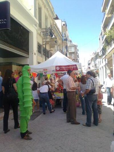Παιδικές φωνές, χαμόγελα, χρώματα και ποικίλες δράσεις "πλημμύρισαν" το πρωί τον πεζόδρομο της Ρήγα Φεραίου, στό ύψος του Ξενοδοχείου "Βυζαντινό". Το βιβλιοπωλείο Παπασωτηρίου, με αφορμή την παγκόσμια ημέρα περιβάλλοντος, διοργάνωσε σύνθετες δημιουργικές δραστηριότητες για τα παιδιά.