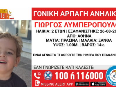 Συγκεκριμένα, στις 26 Αυγούστου ο πατέρας του 2χρονου Λυμπερόπουλου Γιώργου προέβη σε αρπαγή του ανήλικου, στην περιοχή της Αθήνας, χωρίς να υπάρχει σχετική δικαστική απόφαση και έκτοτε αγνοούνται.