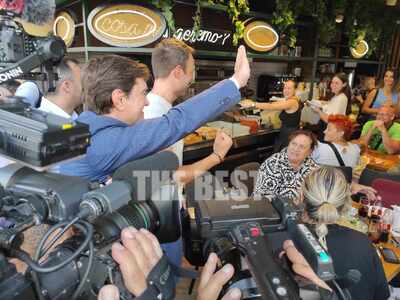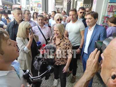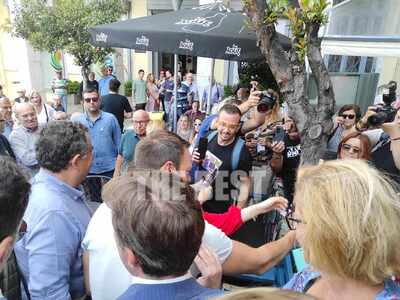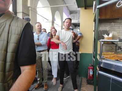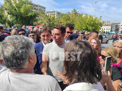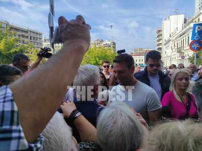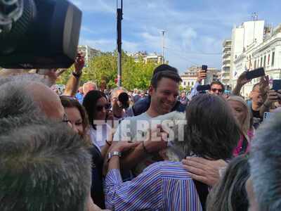 Στη συνέχεια περπάτησε μαζί με τον Κώστα Καρπέτα στο κέντρο της πόλης. Μάλιστα σταμάτησε να ακούσει μουσικό του δρόμου στη Ρήγα Φερραίου, με τον οποίο αντάλλαξαν θερμή αγκαλιά.