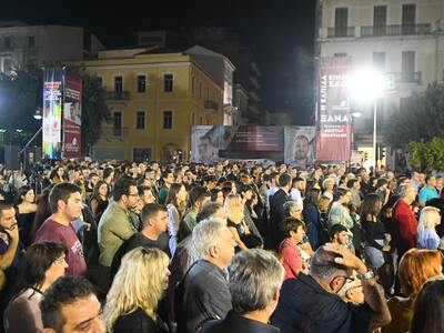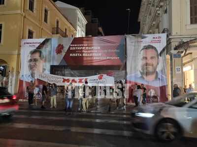 Ολοκληρώθηκε στην Πλατεία Τριών Συμμάχων, η κεντρική προεκλογική συγκέντρωση της Λαϊκής Συσπείρωσης, με ομιλητές τον Δήμαρχο Πατρέων και εκ νέου υποψήφιο, Κώστα Πελετίδη και τον υποψήφιο Περιφερειάρχη Δυτικής Ελλάδας, Σωτήρη Παρίση.