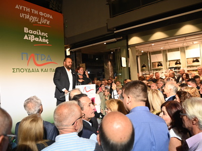 «Οι εκλογές είναι γιορτή. Οι εκλογές είναι επιλογή . Τίποτα δε μας οδηγεί περισσότερο στην παραίτηση και το λαϊκισμό από την αίσθηση ότι τη ζωή μας ορίζει άλλος. Όχι, τη ζωή μας την ορίζουμε μόνο εμείς. Εμείς είμαστε η Πάτρα. Στις 8 Οκτωβρίου πάρτε την Πάτρα στα χέρια σας. Δώστε της ελπίδα… Αγαπήστε την Πάτρα Πάμε μαζί για τη μεγάλη νίκη. Την Κυριακή η Πάτρα θα είναι η μεγάλη νικήτρια» ανέφερε ο υποψήφιος Δήμαρχος Πατρέων Βασίλης Αϊβαλής μιλώντας στην τελευταία του μεγάλη προεκλογική συγκέντρωση, η οποία βρίσκεται σε εξέλιξη αυτή την ώρα, το εκλογικό κέντρο της παράταξής του, στη διασταύρωση των οδών Κορίνθου και Παντανάσσης.