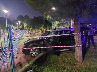 Ο οδηγός έχασε τον έλεγχο του του οχήματος με σέρβικες πινακίδες και ακολούθησε μια τρελή πορεία και τελικά έπεσε στα κάγκελα της παιδικής χαράς όπου σταμάτησε.