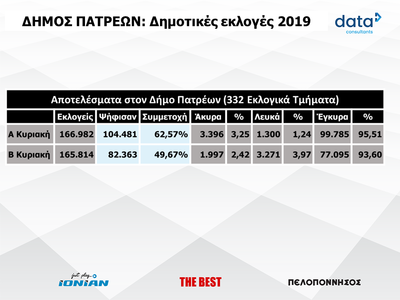 Ο εκλογές σε Δήμο Πατρέων και Περιφέρεια Δυτικής Ελλάδας. Πόσοι ψήφισαν το 2019 και πόσοι είναι οι εγγεγραμμένοι για το 2023.