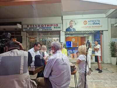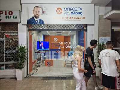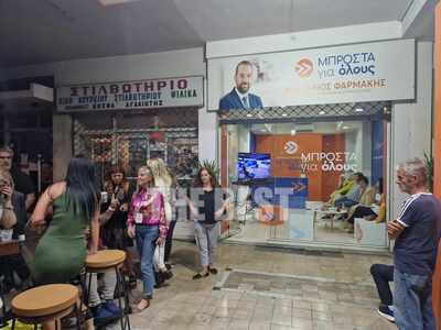 Με χειροκροτήματα υποδέχτηκαν το exit poll στο εκλογικό κέντρο του Περιφερειάρχη Νεκτάριου Φαρμάκη.