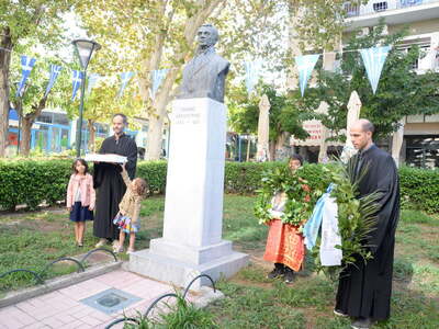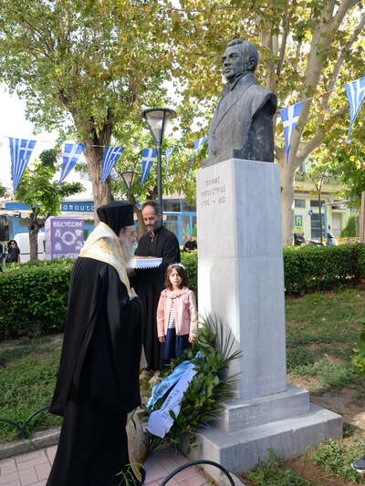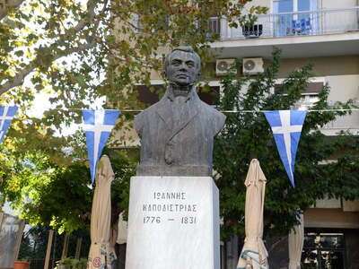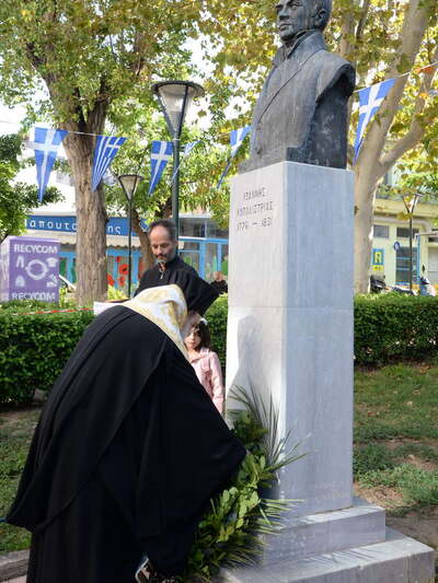 Ἐνώπιον τῆς προτομῆς τοῦ Ἰωάννου Καποδίστρια ἐψάλη ἐπιμνημόσυνη δέηση καί κατετέθησαν στέφανοι.