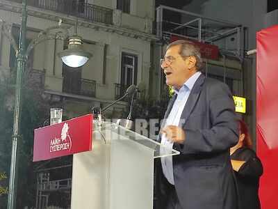 Η Λαϊκή Συσπείρωση του Δήμου Πατρέων πραγματοποίησε προεκλογική συγκέντρωση στην Πλατεία Τριών Συμμάχων.