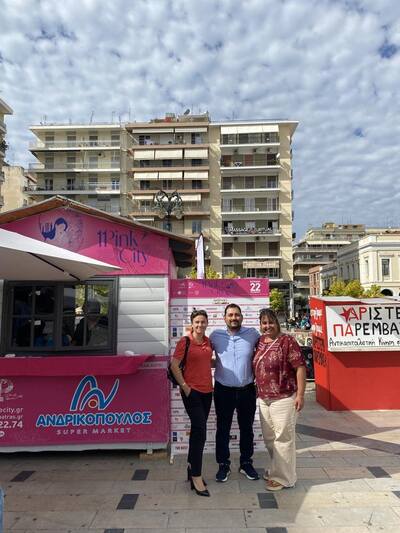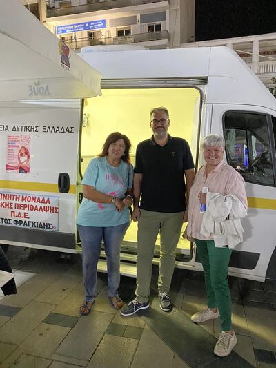 "Από τις 10 έως και τις 14 Οκτωβρίου πραγματοποιήθηκε πενθήμερη κλινική εξέταση μαστού σε συνολικά 7 βάρδιες για τον γενικό πληθυσμό, στην Κινητή Μονάδα Υγείας της Γενικής Διεύθυνσης Δημόσιας Υγείας και Κοινωνικής Μέριμνας της Περιφέρειας Δυτικής Ελλάδας, στην Πλατεία Γεωργίου.