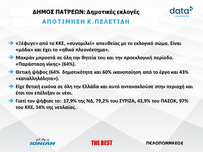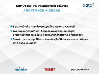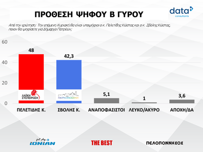 Στις 19:00 το απόγευμα αποκαλύπτονται τα αποτελέσματα των ερευνών της Data Consultants για το β’ γύρο των εκλογών στον Δήμο Πατρέων και αναλύονται οι εξελίξεις!