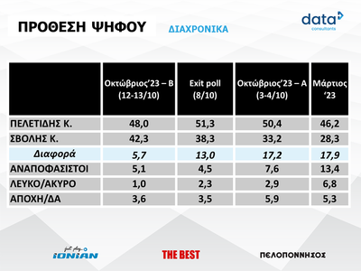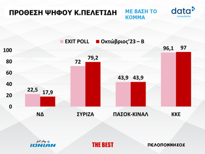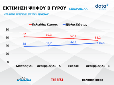 Ο Κώστας Πελετίδης φαίνεται να συγκεντρώνει ποσοστό 50,2% και ο Κώστας Σβόλης να συγκεντρώνει ποσοστό 43,8% στην εκτίμηση ψήφου.