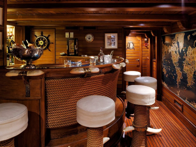 Οι καλεσμένοι διασκέδαζαν στα μεγάλα σαλόνια, στη σουίτα Ωνάση και το άνετο και ατμοσφαιρικό Ari’s Bar, ένα μπαρ κατασκευασμένο από ένα κομμάτι ξύλου που περισυνελλέγει από μια βυθισμένη ισπανική γαλέρα και είναι διακοσμημένο με διάφορους άλλους «θησαυρούς» που συγκέντρωσε ο χαρισματικός πρώην ιδιοκτήτης του.