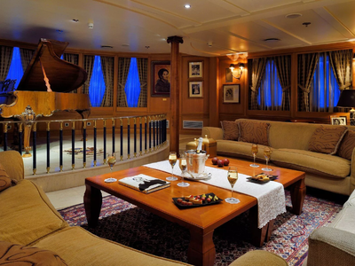Το λαμπερό σκηνικό για τη φιλοξενία μερικών από τους πιο διάσημους πολιτικούς, καλλιτέχνες και καλεσμένους υψηλού προφίλ στον κόσμο, έχει μεταφερθεί άψογα στη σύγχρονη εποχή, χωρίς να χάσει κανένα από τα αρχικά του χαρακτηριστικά. Διαθέτει πολλά σαλόνια, τραπεζαρίες, βιβλιοθήκη, γυμναστήριο, σπα με δύο θεραπευτές πλήρους απασχόλησης για μασάζ και θεραπείες, καθώς και αίθουσα κινηματογράφου και τρία πιάνα στο πλοίο για ψυχαγωγία. Υπάρχει μια εντυπωσιακή κυκλική σκάλα που συνδέει όλα τα καταστρώματα αλλά και ανελκυστήρας.