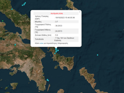 Σύμφωνα με την αυτόματη λύση από το Γεωδυναμικό Ινστιτούτο του Εθνικού Αστεροσκοπείου Αθηνών, ο σεισμός στους Ζάρακες στην Εύβοια είναι της τάξης των 3,7 βαθμών της κλίμακας Ρίχτερ.