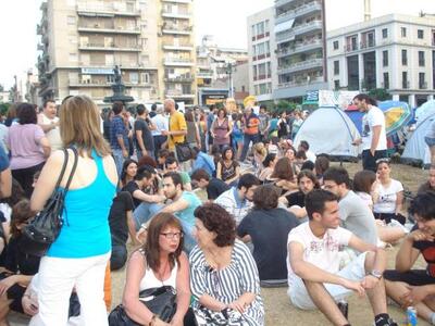 Και στη συμπρωτεύουσα οι διαμαρτυρόμενοι χτυπούν κατσαρόλες και άλλα μαγειρικά σκεύη, καλώντας όλο και περισσότερους πολίτες να συμμετάσχουν στην ανοιχτή γενική συνέλευση που θα πραγματοποιηθεί σε λίγη ώρα.