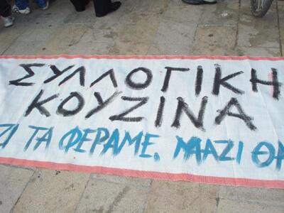 Μάλιστα οι διοργανωτές αυτή την ώρα στήνουν μπουφέ με μακαρόνια, σαλάτες, και άλλα φαγώσιμα για όσους θα δώσουν το παρών αλλά και για τους μετανάστες. Παράλληλα φτιάχνουν ένα πανό υπό τον τίτλο: «συλλογική κουζίνα μαζί τα φέραμε μαζί θα τα φάμε».