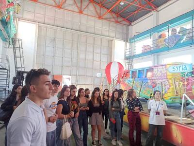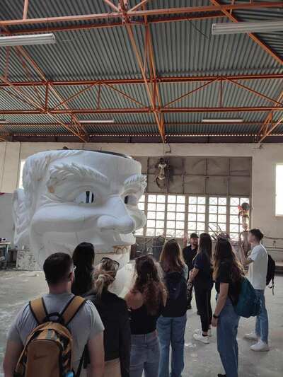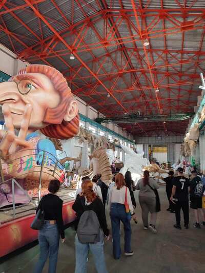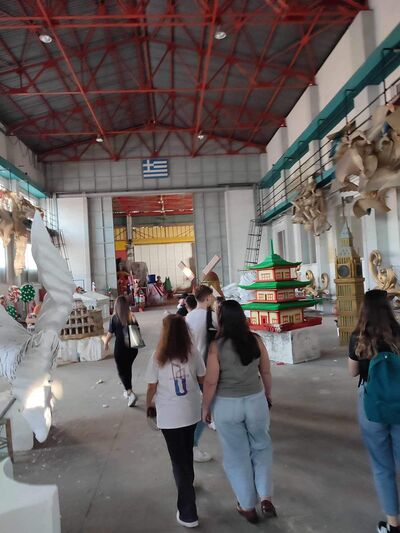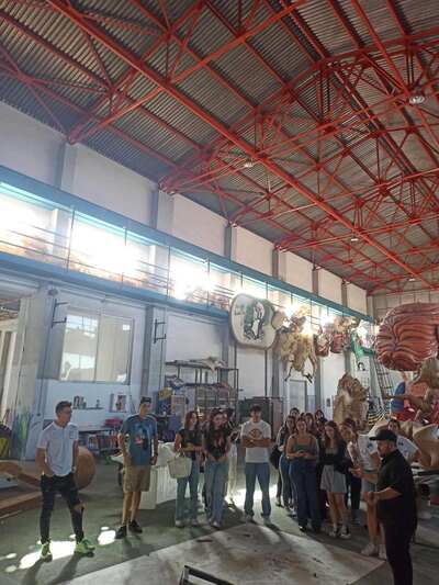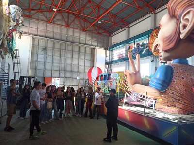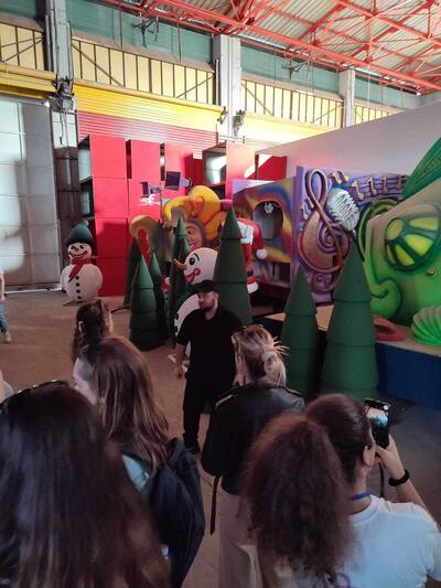 Οι ξεναγήσεις των φοιτητών στην ιδιαίτερη τεχνοτροπία της κατασκευής των καρναβαλικών αρμάτων και των κατασκευών στους χώρους του εργαστηρίου, πραγματοποιούνται από τους εργαζόμενους του Καρναβαλικού Εργαστηρίου Νίκο Λιβάνη, Γιώργο Μπαμπίλη και Χριστίνα Κουφάκη. Οι 70 φοιτητές χτες κατανεμημένοι σε 5 γκρουπ διαδρομών έδειξαν ιδιαίτερο ενδιαφέρον, είχαν μεγάλο ενθουσιασμό για τις δράσεις του Πατρινού Καρναβαλιού και έκαναν πολλές ερωτήσεις αποδεικνύοντας τη δυναμική που έχει η μεγάλη γιορτή της Πάτρας στη νεολαία. Το έξυπνο έντυπο προωθητικό υλικό της ΚΕΔΗΠ-Καρναβάλι Πάτρας (με τη μορφή σβούρας) έκανε πολύ καλή εντύπωση δίνοντας τη δυνατότητα στους φοιτητές σκανάροντας στο barcode να εισέλθουν στην επίσημη σελίδα της ΚΕΔΗΠ και να περιηγηθούν σε ενημερωτικό υλικό και βίντεο μαθαίνοντας πολλά για τον κορυφαίο θεσμό.