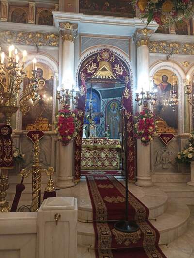 Ἀνεφέρθη στήν μυροβόλο ζωή τοῦ Μεγαλομάρτυρος καί στίς πληγές τοῦ μαρτυρίου του, στήν μυροβλυσία καί στά θαύματα πού ἐπιτελοῦνται διά πρεσβειῶν του σέ ὃσους ἀσπάζονται μετά πίστεως θερμουργοῦ τά ἱερά Λείψανά του.