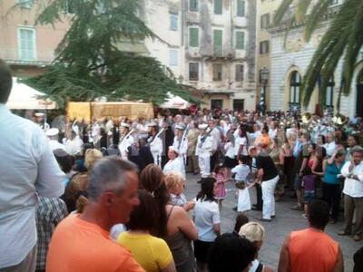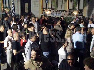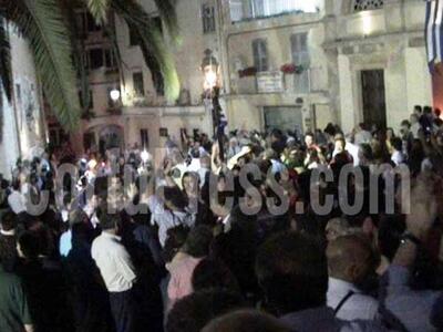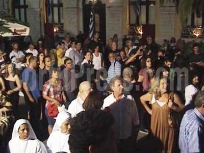 Η συγκέντρωση των αγανακτισμένων της Κέρκυρας έγινε στην πλατεία Δημαρχείου και συνέπεσε με τη Λιτανεία των Καθολικών, που έγινε στον ίδιο χώρο.