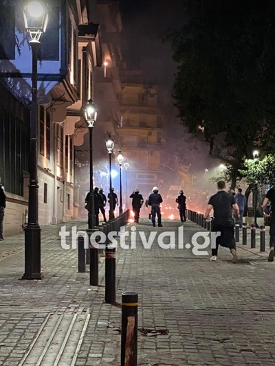 Σύμφωνα με τις πρώτες πληροφορίες, περίπου 30 κουκουλοφόροι κινήθηκαν προς τη συμβολή των οδών Κασσάνδρου και Αποστόλου Παύλου και επιτέθηκαν στους αστυνομικούς, με 30 βόμβες μολότοφ.
