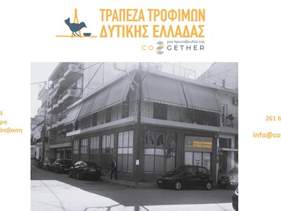 «Μέσα από την Τράπεζα Τροφίμων Δυτικής Ελλάδας, διαχειριζόμαστε τα τρόφιμα που δεν μπορεί να απορροφήσει η τοπική αγορά και τα προσφέρουμε σε ευπαθείς ομάδες πληθυσμού της Περιφέρειας. Στόχος μας είναι να καλύψουμε τις κοινωνικές ανάγκες και να συμβάλλουμε στη μείωση της σπατάλης των τροφίμων» αναφέρει η co2gether που πήρε τη πρωτοβουλία για τη δημιουργία της. Πρόκειται για μία μη κερδοσκοπική εταιρεία που σκοπό έχει να ενώνει δημόσιους φορείς, κοινωνικές οργανώσεις, ιδιωτικές εταιρίες, ερευνητικούς και εκπαιδευτικούς φορείς, ώστε να παρέχονται υπηρεσίες, προγράμματα και δράσεις κοινωνικής συνοχής, επιστρέφοντας αξία στην Κοινωνία και στους Πολίτες.