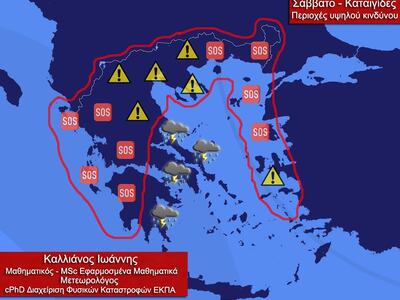 Τις περιοχές που θα βρεθούν στο "μάτι" της κακοκαιρίας το Σάββατο γνωστοποίησε ο μετεωρολόγος Γιάννης Καλλιάνος. Όπως είπε μέσω της σελίδας του στο facebook, η διάρκεια της κακοκαιρίας θα είναι 24 ώρες. Καλό θα ήταν να περιοριστούν οι μετακινήσεις κατά τη διάρκεια εκδήλωσης των ισχυρών φαινομένων.