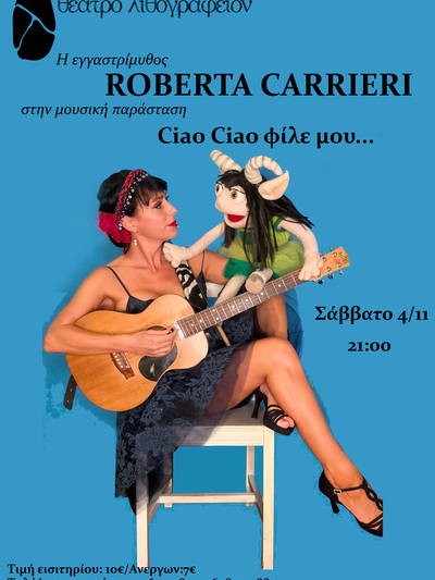 Η εγγαστρίμυθος, τραγουδοποιός και ηθοποιός Roberta Carrieri έρχεται από το Μιλάνο της γειτονικής Ιταλίας για να δώσει μία και μόνο παράσταση, το «Ciao ciao φίλε μου...» στην Πάτρα.