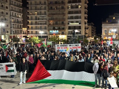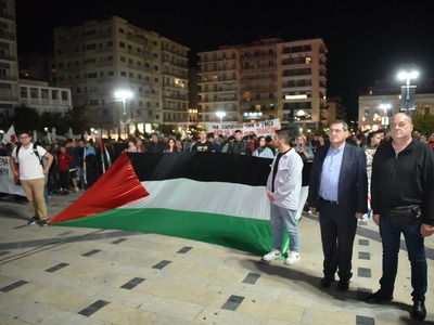 Στην αποψινή διαδήλωση για την Παλαιστίνη, που έγινε στην πλατεία Γεωργίου, βρέθηκαν μέλη της δημοτικής αρχής, μαζί με τον Κώστα Πελετίδη.