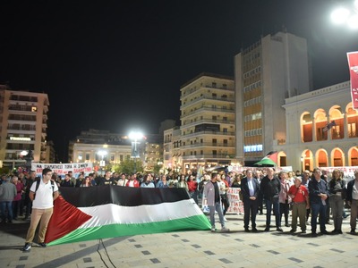 Με επικεφαλής τον Δήμαρχο, Κώστα Πελετίδη, η Δημοτική Αρχή της Πάτρας συμμετείχε στη διαδήλωση και τη συναυλία αλληλεγγύης που διοργάνωσε σήμερα (Κυριακή) το βράδυ, στην πλατεία Γεωργίου, το Εργατικό Κέντρο Πάτρας για το λαό και τα παιδιά της Παλαιστίνης. Στη συναυλία συμμετείχε η Λαϊκή Ορχήστρα του Χορευτικού Τμήματος, του Πολιτιστικού Οργανισμού του Δήμου Πατρέων.