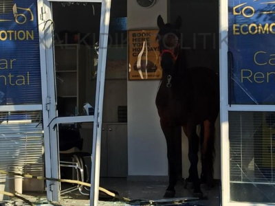 Αναστάτωση επικράτησε στη Χαλκιδική, όταν ένα άλογο εισέβαλε σε επιχείρηση με ενοικιαζόμενα αυτοκίνητα.