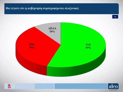 Παράλληλα, το 55% των ερωτηθέντων θεωρεί ότι η κυβέρνηση συμπεριφέρεται αλαζονικά.