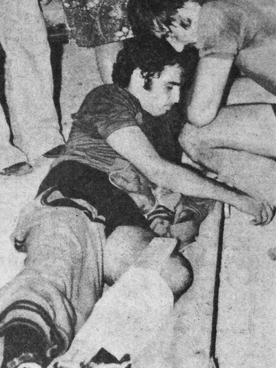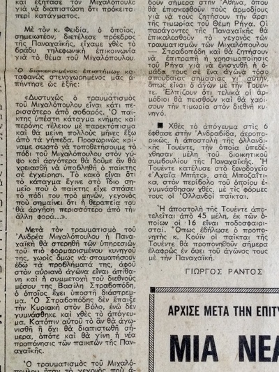 Η σκηνή του τραυματισμού του έγινε πρωτοσέλιδη, όπως βλέπουμε στο «Φως» της επομένης (αρχείο Γιώργου Νικητόπουλου).