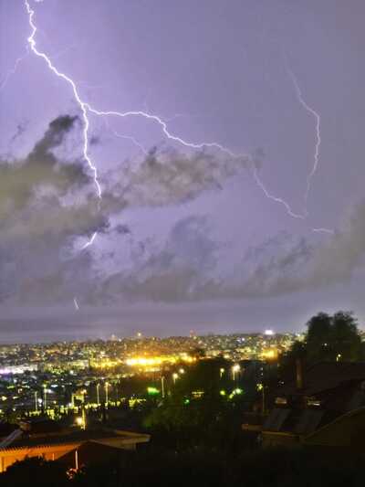 Ο γεωλόγος και προγνώστης καιρού Νικόλας Σερέτης "χώρεσε" σε μια εντυπωσιακή φωτογραφία, κεραυνό που έπεσε, το βράδυ της Κυριακής, εν μέσω καταιγίδας, στην Πάτρα.