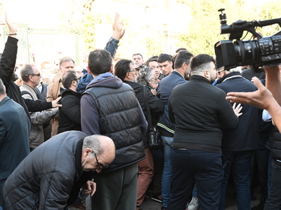 Με το που είδαν τον πρόεδρο του ΠΑΣΟΚ άρχισαν να φωνάζουν και ορισμένοι και να πετούν καφέδες. Μάλιστα άνθρωπος της ασφάλειας του Νίκου Ανδρουλάκη άνοιξε ομπρέλα, για να μην πετύχει κάτι τον πρόεδρο του ΠΑΣΟΚ.