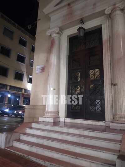 Νεαροί πέταξαν μπογιές στο δικαστικό μέγαρο της Πάτρας.