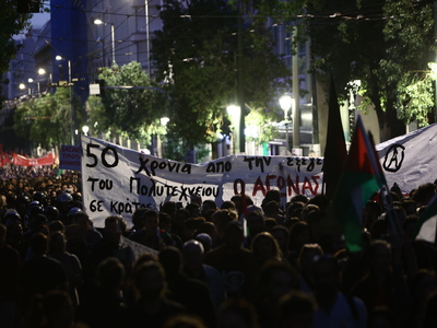 Φοιτητικοί σύλλογοι με σύνθημα «οι εξεγέρσεις δεν μπαίνουν στα μουσεία, εμπρός για της γενιάς μας τα Πολυτεχνεία», φορείς, ο ΣΥΡΙΖΑ-ΠΣ, το ΠΑΣΟΚ-ΚΙΝΑΛ, το ΜέΡΑ25, κόμματα κι οργανώσεις της εξωκοινοβουλευτικής Αριστεράς, εργατικά σωματεία και συλλογικότητες του αντιεξουσιαστικού χώρου συγκεντρώθηκαν αρχικά στην πλατεία Κλαυθμώνος και στο άγαλμα του Κολοκοτρώνη και κατευθύνονται προς την αμερικανική πρεσβεία.