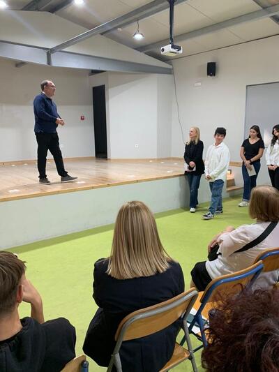 Οι μαθητές & οι μαθήτριες είχαν την ευκαιρία να ακούσουν τον Δημήτρη Κοσμόπουλο, συγγραφέα του βιβλίου "Δικτατορία και Αντίσταση στην Πάτρα (1967-1974)" που μετέφερε τις αναμνήσεις του από τις μέρες εκείνες