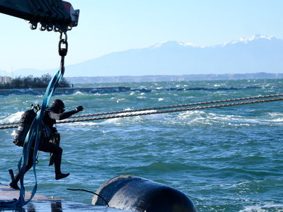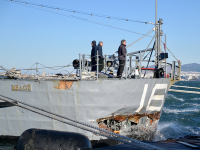 Το ρυμουλκό πλοίο «Dionysos Z» που έχει καταφτάσει από χθες προληπτικά πλάι στο «Βέλος» βρίσκεται ακόμη στο σημείο, ενώ στην προσπάθεια για την ανύψωση του πλοίου συμμετέχει και ένας δύτης, ο οποίος τοποθέτησε τον γερανό στο πολεμικό πλοίο προκειμένου να γίνει η ανύψωση. Γερανός αφαίρεσε κομμάτι της πρύμνης του «Βέλους» που φθάρθηκε και αποκολλήθηκε από το χθεσινό χτύπημα επάνω στο τσιμεντένιο κρηπίδωμα της Νέας Παραλίας.