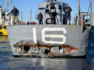 «Εκφράζουμε την έντονη διαμαρτυρία μας προς την ηγεσία του Υπουργείου Εθνικής Άμυνας, γιατί εξακολουθεί να κωφεύει στα διαβήματά μας - και τις σχετικές ερωτήσεις βουλευτών - που προειδοποιούσαν ότι «η κατάσταση του πλοίου είναι ΑΚΡΩΣ ανησυχητική κι επισφαλής», καθώς ο χώρος της Νέας Παραλίας στην Θεσσαλονίκη στον οποίο μεταφέρθηκε το πλοίο είναι εντελώς ακατάλληλος και δεν πληρούνται οι διεθνείς προβλέψεις ασφαλείας κατά ISPS Code κι επιπλέον γιατί σαν πολεμικό πλοίο δεν έχει την κατάλληλη προστασία, δεδομένου ότι ο χώρος αυτός είναι επισφαλής γιατί δεν συνιστά ασφαλές λιμάνι. Αντιθέτως, είναι ανοιχτός στους ανέμους [κυρίως βαρδάρης] και στη θάλασσα, με αποτέλεσμα το μνημείο να είναι απολύτως απροστάτευτο από τα καιρικά φαινόμενα. Για ένα πλοίο 80 ετών που χρειάζεται συστηματική και ιδιαίτερη συντήρηση, οι συνθήκες αυτές είναι καταστροφικές».