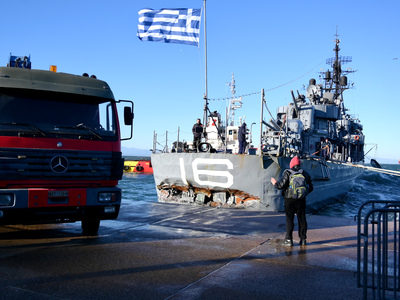 Ζημιές εξαιτίας των θυελλωδών ανέμων υπέστη το ιστορικό αντιτορπιλικό «Βέλος» που βρίσκεται στη Νέα Παραλία, Θεσσαλονίκης.