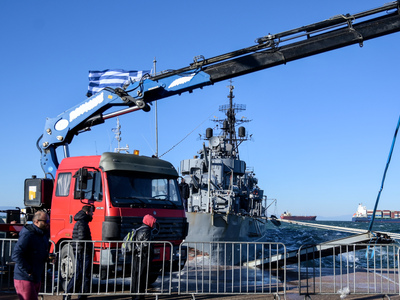 Σύμφωνα με το voria, από νωρίς το πρωί της Κυριακής γερανός έχει φτάσει στη Νέα Παραλία και προσπαθεί να ανυψώσει το ιστορικό αντιτορπιλικό «Βέλος», προκειμένου το πλωτό μουσείο του Πολεμικού Ναυτικού να πάψει να φθείρεται από τα ορμητικά κύματα.