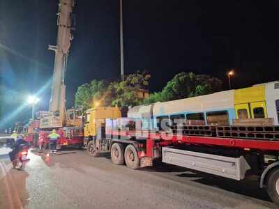 Με τη βοήθεια γερανού τα βαγόνια του τρένου επανατοποθετήθηκαν στη γραμμή και ο συρμός τέθηκε σε κίνηση.