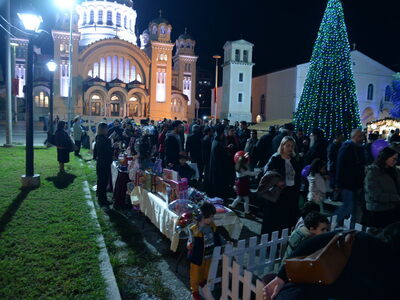 Σ’ αὐτό, λοιπόν τό ἑορταστικό καί χαρμόσυνο κλῖμα, φωταγωγήθηκε λοιπόν τό ὡραιότατο Χριστουγεννιάτικο δέντρο, βεγγαλικά φώτισαν τόν Πατραϊκό οὐρανό, γλυκίσματα προσφέρθησαν σέ ὃλους καί ἂρχισε ἡ φιλανθρωπική δραστηριότητα τῆς τοπικῆς μας Ἐκκλησίας, γιά τήν περίοδο τῶν Χριστουγεννιάτικων Ἑορτῶν, ὣστε νά ἑνώσουμε ὃλοι μας τίς δυνάμεις μας, μέ σκοπό νά ἀγκαλιάσουμε ὃλους τούς ἐνδεεῖς καί ἐμπεριστάτους ἀδελφούς μας, ἰδιαιτέρως κατ’ αὐτάς τάς ἡμέρας.