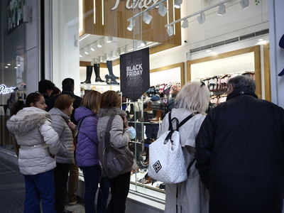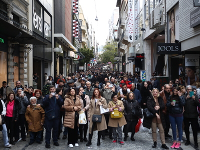 Γεμάτη από κόσμο είναι η Ερμού, σήμερα Κυριακή, λόγω των ανοιχτών καταστημάτων και των προσφορών στο πλαίσιο της Black Friday.
