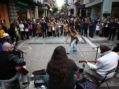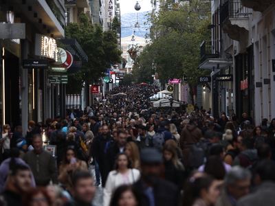 Οι πολίτες δεν πτοήθηκαν από το κρύο που επικρατεί στην πρωτεύουσα και «ξεχύθηκαν» στον πιο εμπορικό δρόμο της Ελλάδος για τα ψώνια τους ενόψει των εορτών, ενώ και το χριστουγεννιάτικο σκηνικό που επικρατεί στο κέντρο μετά τη φωταγώγηση του δέντρου προσφέρει μια άλλη ομορφιά στην... κυριακάτικη βόλτα.