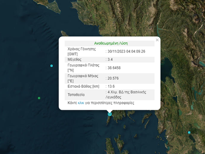 Σεισμός μεγέθους 3,4 βαθμών της κλίμακας Ρίχτερ σημειώθηκε το πρωί της Πέμπτης στη Λευκάδα.