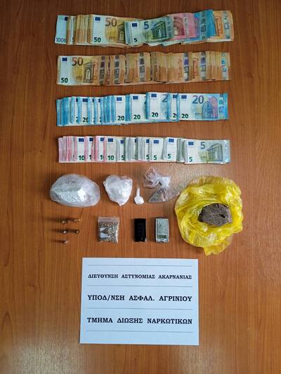 Οι αστυνομικοί του Τμήματος Δίωξης Ναρκωτικών της Υποδιεύθυνσης Ασφάλειας Αγρινίου, αξιοποιώντας πληροφορίες, εντόπισαν τον έναν άνδρα να οδηγεί αυτοκίνητο και σε έλεγχο που του ενήργησαν, βρήκαν στην κατοχή του και κατάσχεσαν 4.095 ευρώ και ένα κινητό τηλέφωνο, ενώ σε έρευνα που ακολούθησε σε κατάστημά του, οι αστυνομικοί βρήκαν και κατάσχεσαν: