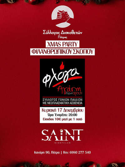 Συγκεκριμένα, την Κυριακή 17 Δεκεμβρίου 2023, ο Σύλλογος Δισκοθετών Πάτρας, διοργανώνει το τρίτο του πάρτι, φιλανθρωπικού χαρακτήρα, στο Saint Club.