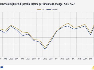 Το 2022, το πραγματικό ακαθάριστο προσαρμοσμένο διαθέσιμο εισόδημα των νοικοκυριών ανά κάτοικο στην ΕΕ κατέγραψε μείωση 0,8%, ενώ η ζώνη του ευρώ σημείωσε πτώση 0,9%, τις πρώτες μειώσεις από το 2013. Σημάδι πως το 2022 ήταν μια πολύ ανησυχητική χρονιά για τους ευρωπαίους πολίτες.