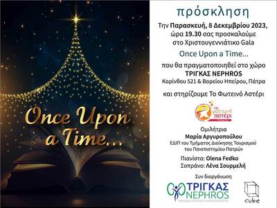 Στην ΤΡΙΓΚΑΣ NEPHROS ΜΟΝ ΑΕ, όπως και στην Cube Gallery, αγαπάμε τις ωραίες συνεργασίες, αλλά και το να δημιουργούμε ευκαιρίες για να "μοιραζόμαστε την τέχνη ... ". Αυτός ήταν και ο κύριος λόγος που οι τέχνες συναντιούνται για την δημιουργία του event Once Upon a Time, που θα πραγματοποιηθεί την Παρασκευή, 8 Δεκεμβρίου 2023, 19.30 στο φιλόξενο lobby της ΤΡΙΓΚΑΣ NEPHROS, Κορίνθου 521 & Βορείου Ηπείρου, Πάτρα.