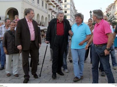 Αντιδρώντας στην απόφαση του δημάρχου Θεσσαλονίκης να του επιτρέψει να μιλήσει στην πλατεία Αριστοτέλους προς τον αγανακτισμένο λαό, ο Μίκης Θεοδωράκης βρίσκεται σήμερα το απόγευμα στην πλατεία-σύμβολο της Θεσσαλονίκης κάνοντας κατάληψη. ''Η πλατεία ανήκει στον ελληνικό λαό.